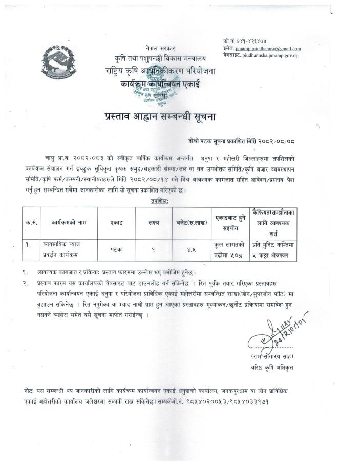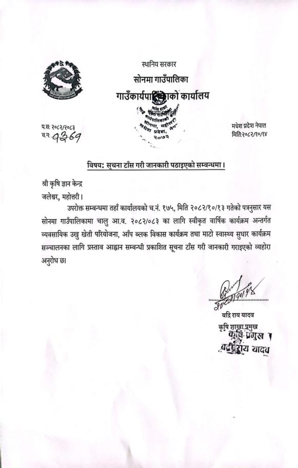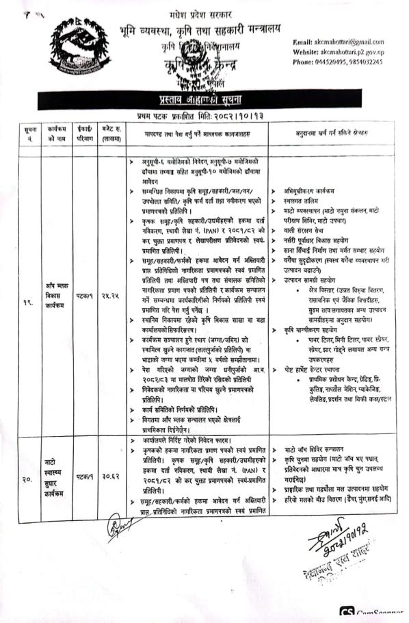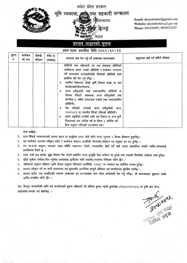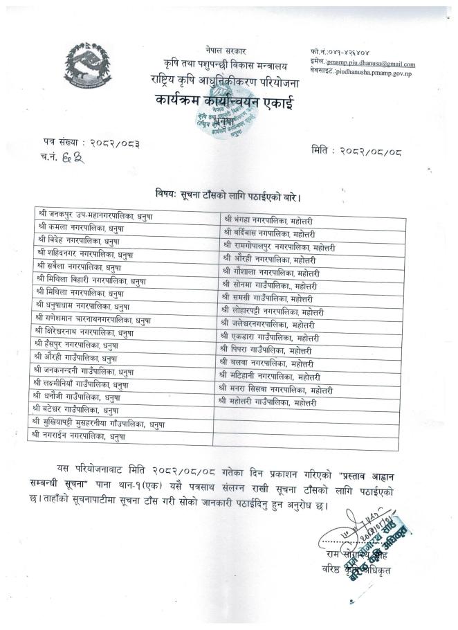 परियोजना कार्यान्वयन इकाई महोत्तरी आवद्धताक लागि सुचिकृत गर्ने सम्बन्धमा सुचना