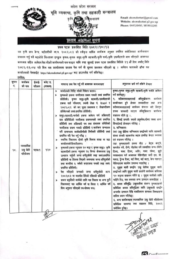 भूमिगत सिंचाई व्यवस्थापन सहयोग कार्यक्रमका लागि आवेदन पेश गर्ने सम्बन्धी सूचना |