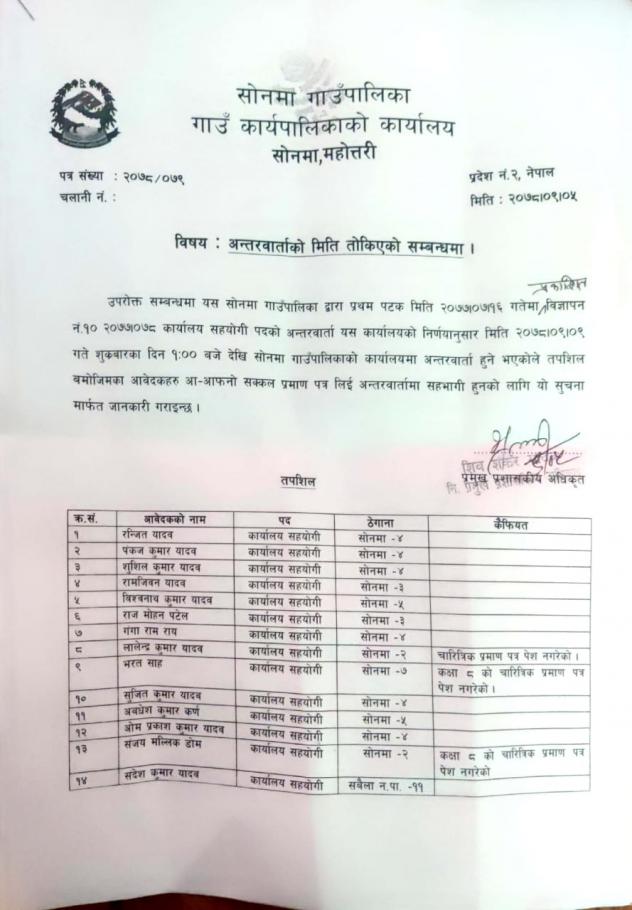गाउँ शिक्षक पदको नतिजा प्रकाशन l मैखिक परीक्षा जेष्ठ १७ गते हुने l