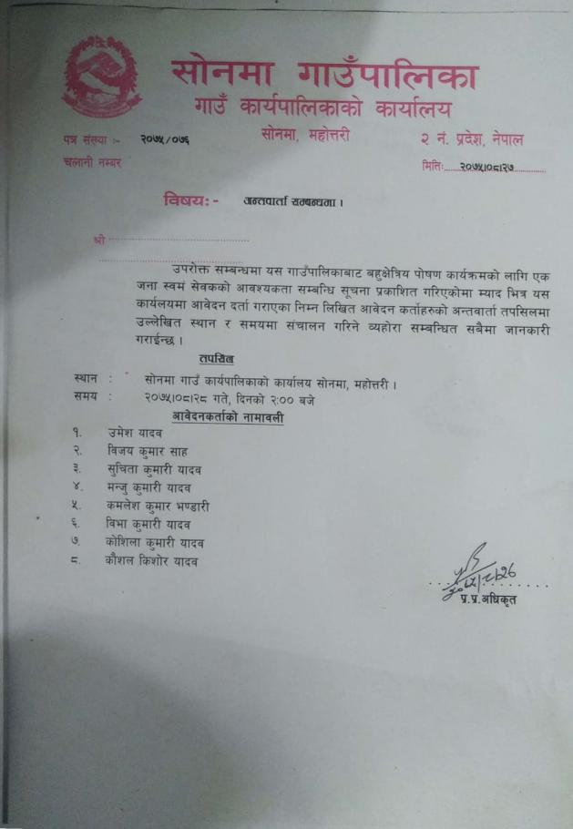 परियोजना कार्यान्वयन इकाई महोत्तरी आवद्धताक लागि सुचिकृत गर्ने सम्बन्धमा सुचना