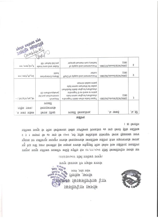 स्यानेटरी प्याड तथा गहुँ वीउ खरिद तथा सप्लाई सम्बन्धी शिलवन्धी दरभाउपत्र आहवान सम्बन्धि सूचना