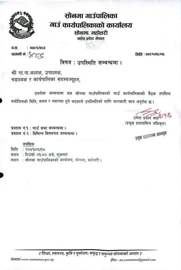 उपस्थिति समन्धमा l