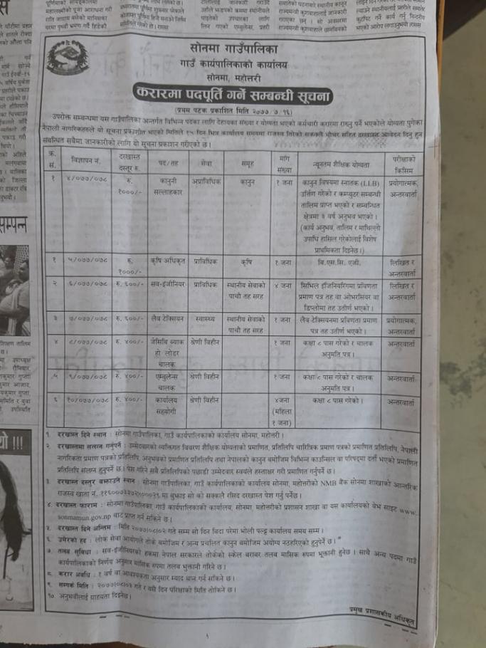 करारमा पदपुर्ती गर्ने सम्बन्धमा सुचना