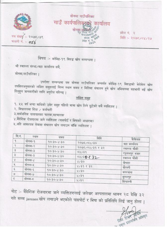 सूचना प्रसाशन गरिएको सम्बन्धमा |
