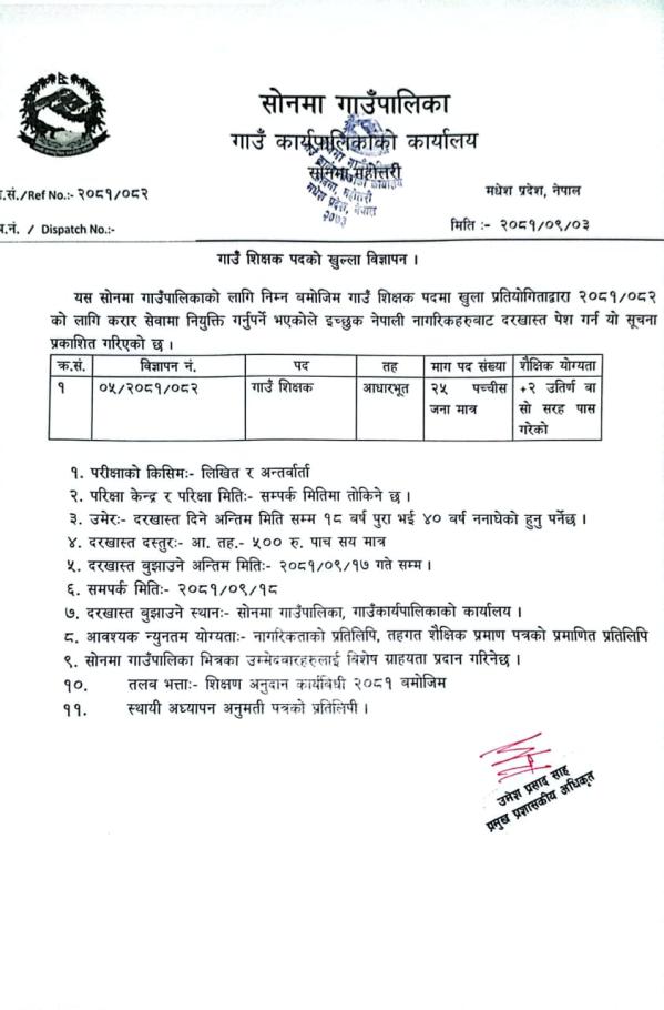 » गाउँ शिक्षक विज्ञापन २०८१