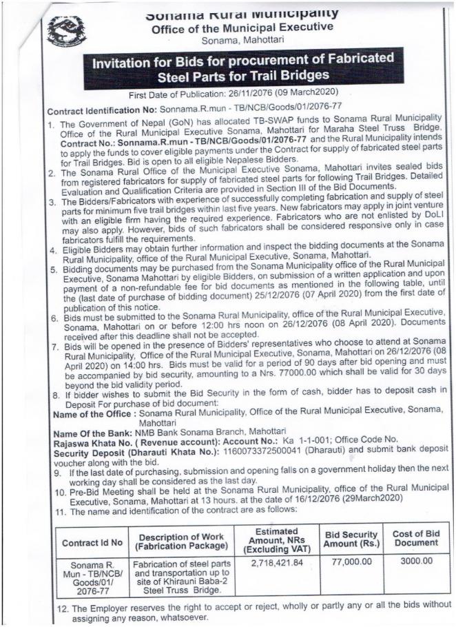 सार्वजनिक खरिद/बोलपत्र सूचना