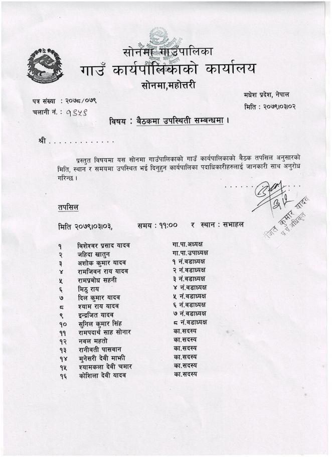 गाउँ शभाको बैठकमा उपस्थिती सम्बन्धमा l
