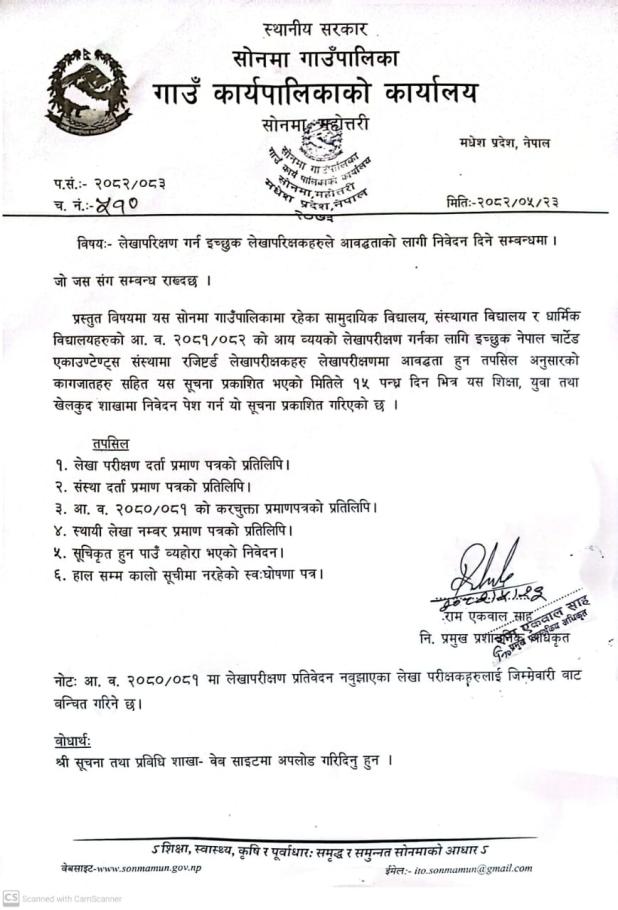 लेखा परिक्षणको लागी आश्यपत्र पेश गर्ने सम्बन्धमा l