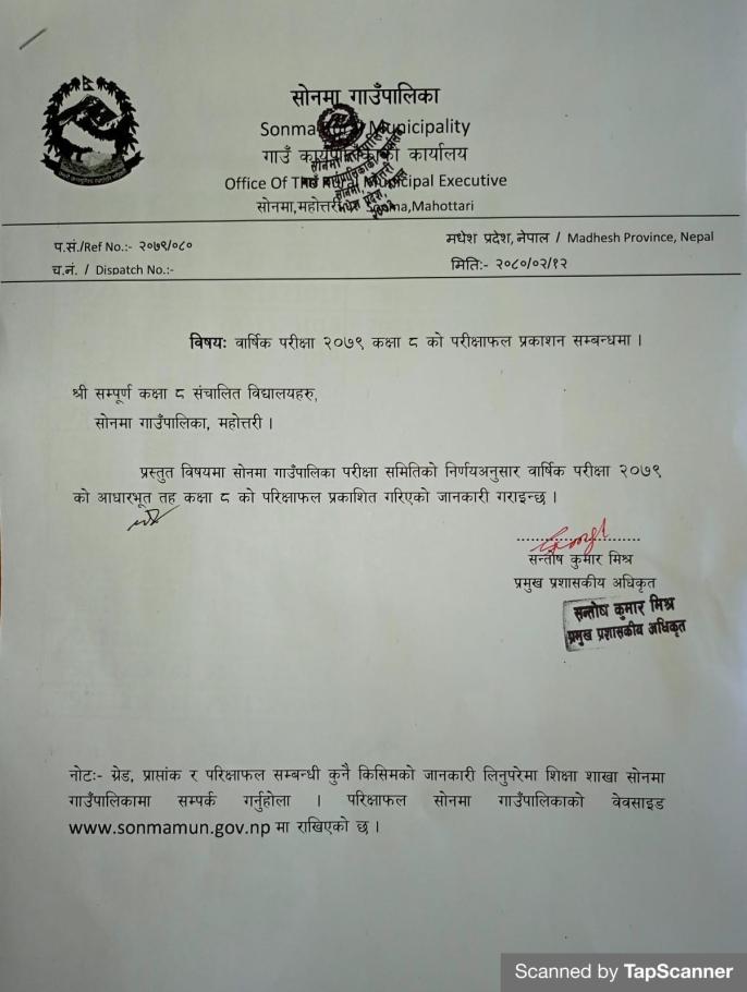 वार्षिक परिक्षा २०७९ कक्षा ८ को परिक्षा फल प्रकाशित