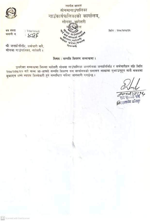 सम्पति विवरण भर्ने सम्बन्धमा l