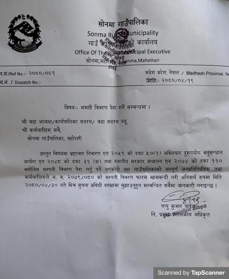 सम्पति विवरण भर्ने सम्बन्धमा l