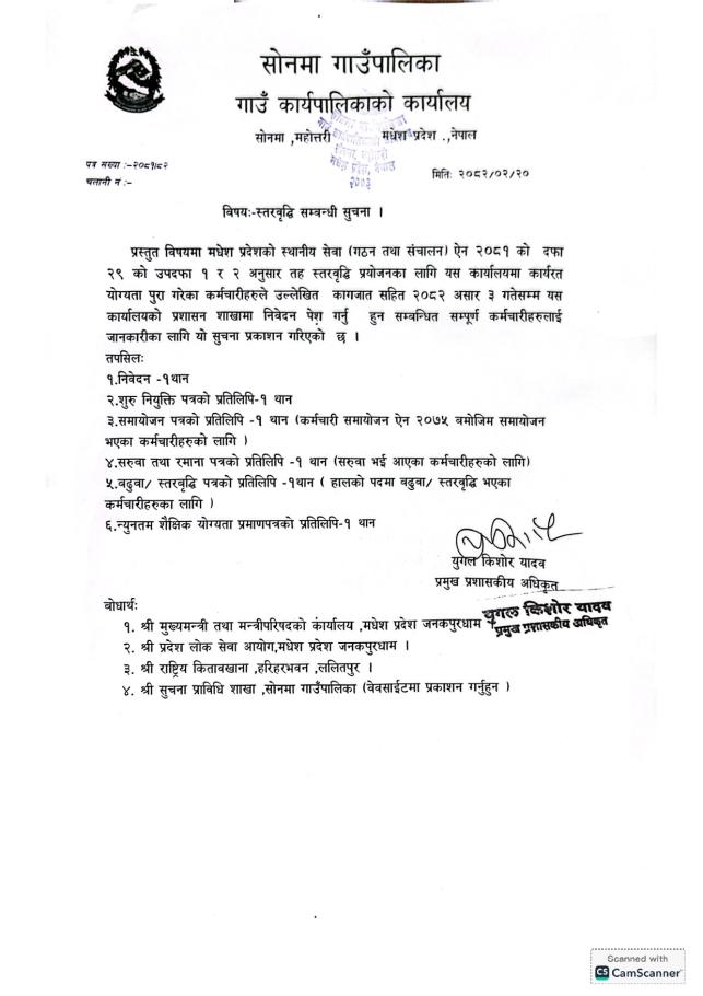 सूचना प्रसाशन गरिएको सम्बन्धमा |