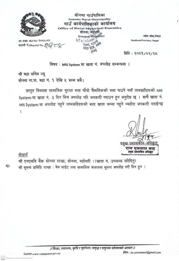 » MIS System मा खाता नं. अपलोड गर्ने सम्बन्धमा